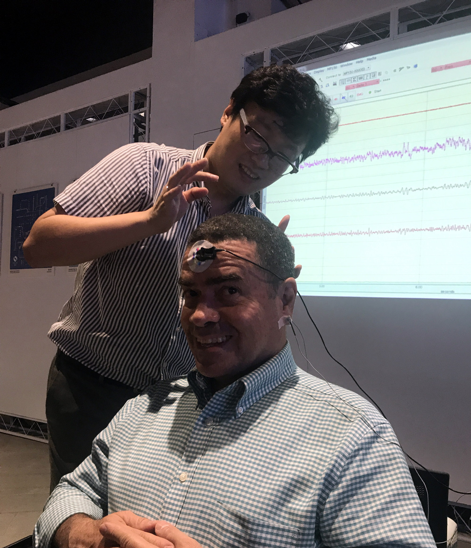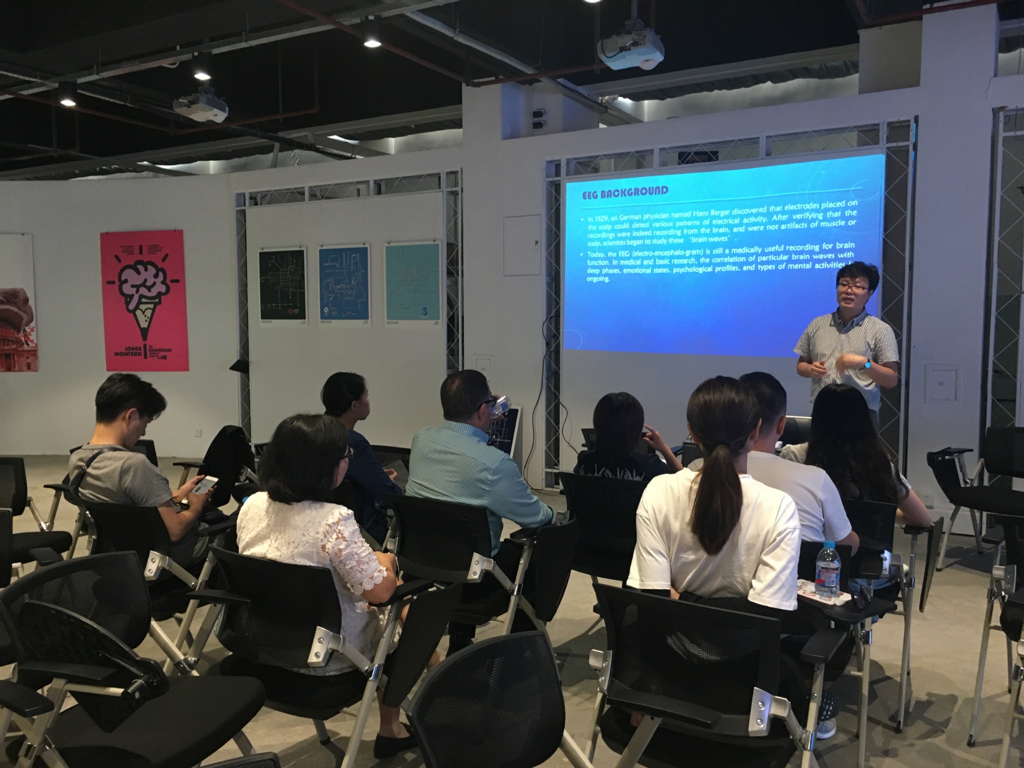 实验室负责人旅日归国的黄晶石博士阐述了该实验室的建设初衷,日本在工科设计方面的思维模式及艺工结合的方式方法,并针对未来和设计的结合做了系统化地描述。现场还对脑波测量技术进行了演示。双方约定今后就相关领域展开跟深入的互访和学术交流活动。