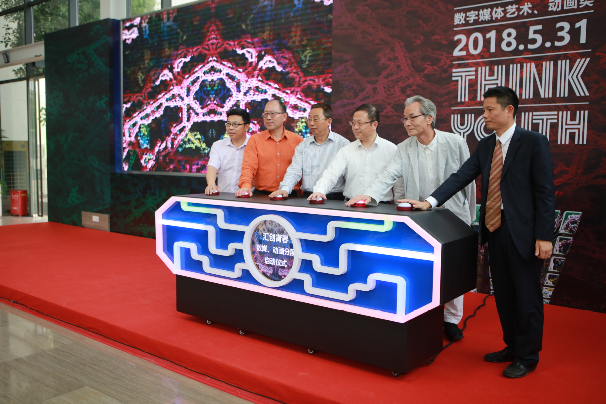 接下来现场嘉宾启动了本届汇创青春上海老员工文化创意作品展示季(数字媒体艺术、动画类)活动;并共同参观了本次优秀作品展示。 以吴亚生教授领衔的数字媒体艺术教学团队参赛作品《礼天》选择了唐贞观二年冬至日的祭天国礼,展现了身穿衮冕的唐太宗皇帝在文武百官护拥下从皇宫前往圜丘向“昊天上帝”祈求风调雨顺、国泰民安的庄严祭礼流程。作品创作目的不仅是将唐代祭天大典这一文化遗存进行三维数字复原展示于世人,更是希望通过作品传达出我们对文化的一种溯源,对历史的尊重,唤起大众对民族文化的自省。作品充分融入了互联网+概念,使智慧科技与艺术进行完美融合。除了有传统的动画及三维作品之外,还有新媒体交互作品及虚拟现实作品,中韩多媒体设计学院刘德川、陆逸廷设计的作品《MIX•共容》即运用了数字影像的技术,对忍冬纹在不同地域,不同文化下的特色和形态,结合当时所处的背景进行创意设计,使得濒临灭绝得文化艺术又一次回归观众视野。