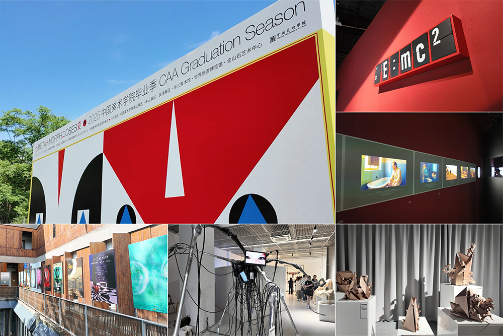 调研组成员深入国美毕业展现场、系统学习和借鉴了本次毕展的创新理念和表现形式。在象山校区,教师们观摩了动态雕塑“思想群岛”、解构消费主义的“手生万物”、结合本土建筑的“变于不变”、多形态影像实验及批判算法霸权的《数字海盗》等作品,深刻感受到国美师生以艺术重构世界的批判力与创造力。良渚校区的设计教育核心展区同样亮点纷呈。创新设计学院聚焦AI、生物技术等领域的“临界观测”,孤独症主题的《知乎折也》;工业设计学院“无级生生”探索智能出行与运动产品;时尚设计、视觉传播等学院的作品也展示了可持续、数字化、文化转译等方向的作品。整个毕展以“变”为魂,凸显了国美用创新回应时代命题的努力。