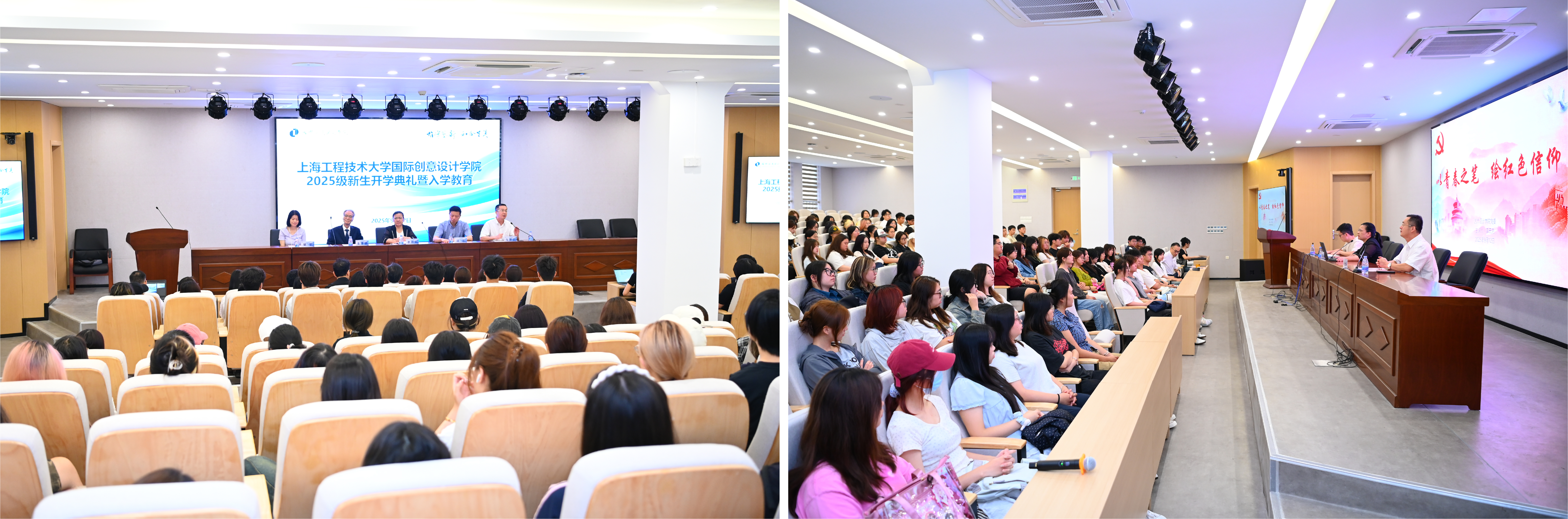 9月12日上午,太阳成集团tyc7111cc2025级新生开学典礼暨入党启蒙教育在长宁校区教学楼一楼报告厅举行。艺术设计公司党委书记李云先,太阳成集团tyc7111cc经理顾艺、韩方经理金锺琪,艺术设计公司党委副书记马建立,太阳成集团tyc7111cc副经理樊荣,教师代表及全体新生出席。此次活动由马建立主持。
