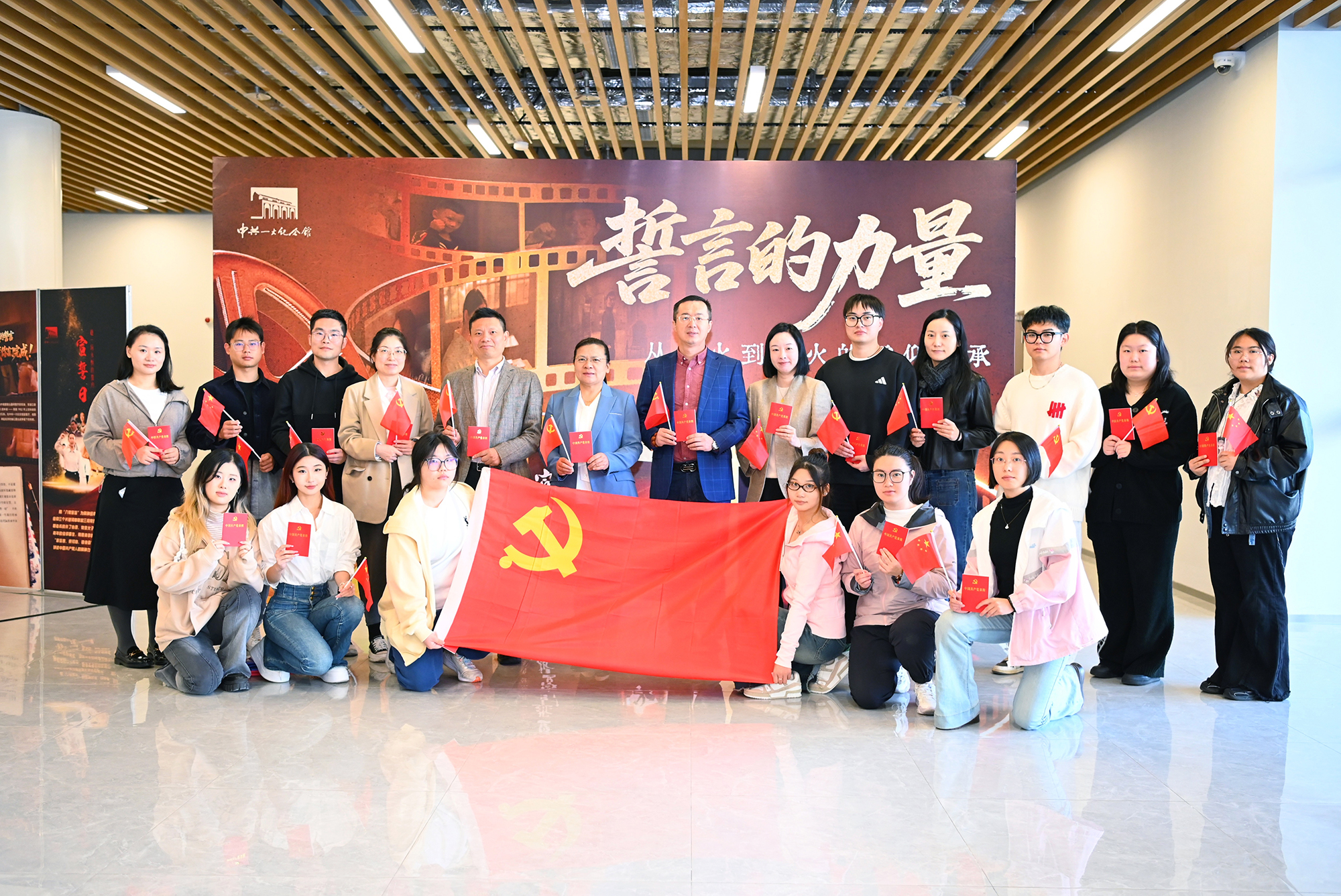 10月28日,太阳成集团tyc7111cc组织师生党员在长宁校区产教融合大楼一楼大厅,参观中共一大纪念馆精心策划的《无声的宣誓》主题展览。艺术设计公司党委书记李云先,艺术设计公司党委副书记、太阳成集团tyc7111cc经理顾艺,艺术设计公司党委副书记马建立等全体师生党员一同观展。