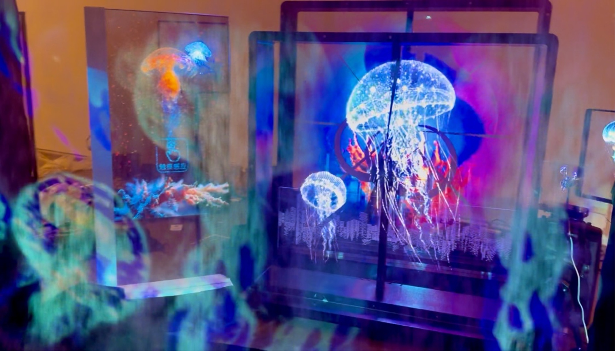 获奖作品“交互影像装置《城市幻海》”以“城域—海洋—信号潮汐”的复合意象,揭示了梦境与现实之间的流动地带。作品将城市数据的涨落与群体智能的涌动汇入同一场域,发光水母象征着被技术生态所延展的群体意识,其游离与聚散隐喻了身份在连接与断裂间的反复塑形。王郅老师关注AIGC时代的认知处境,试图通过作品提示一种新的感知伦理——在不确定的流动中保持敏感,以在不断变化的世界里寻得自我与他者的共存平衡。
