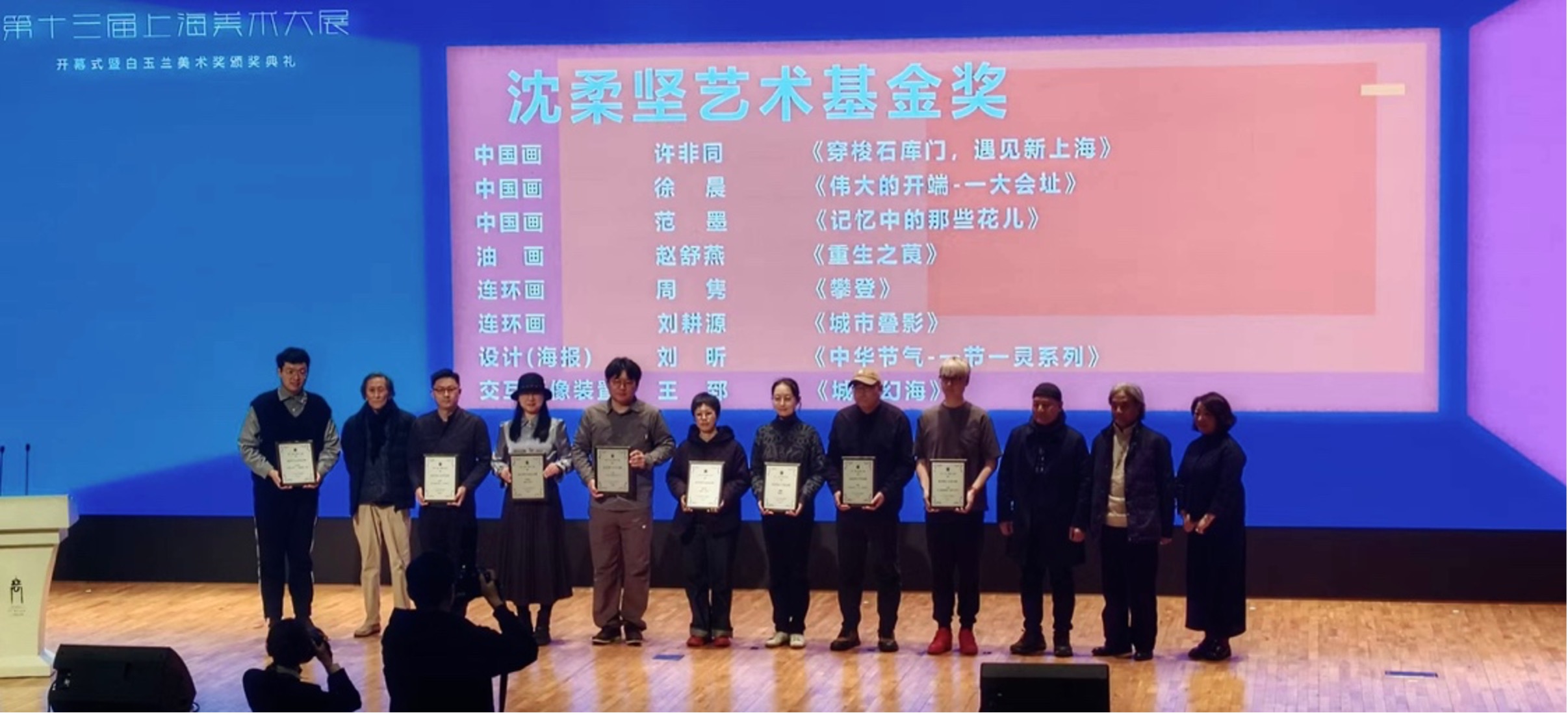 12月5日,第十三届上海美术大展在上海美术馆开幕,太阳成集团tyc7111cc视觉传达设计系、Nexus Horizon工作室负责人王郅副教授的作品荣获大展“沈柔坚艺术基金奖”。