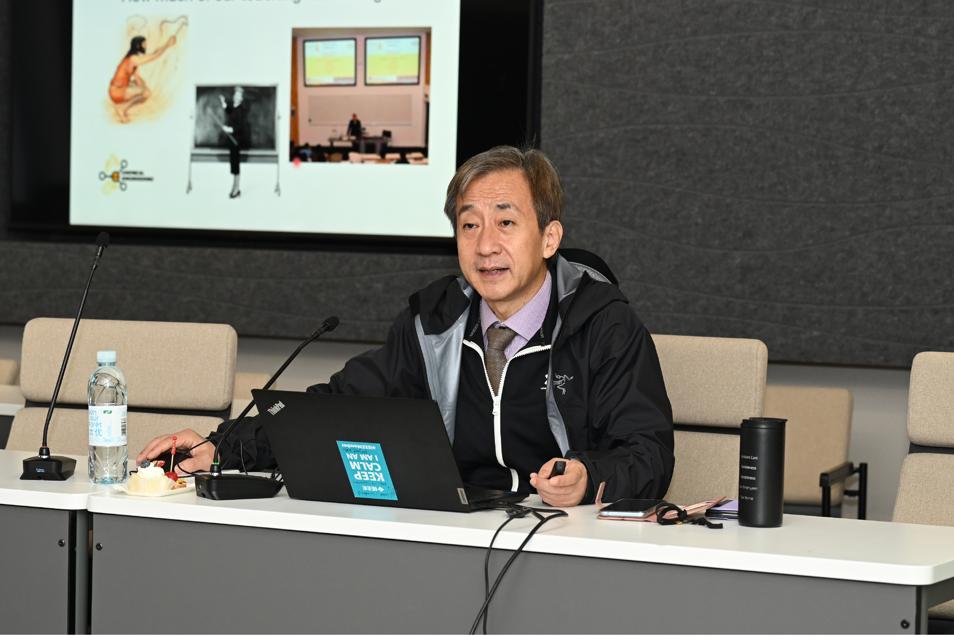 Adam Chiang教授介绍了海外高职教育概况、新加坡高职教育员工培养目标与蓝图、课程教学建设的科学运行与管理、特色化教学案例分析、AI时代下的产·教·学融合创新等内容。